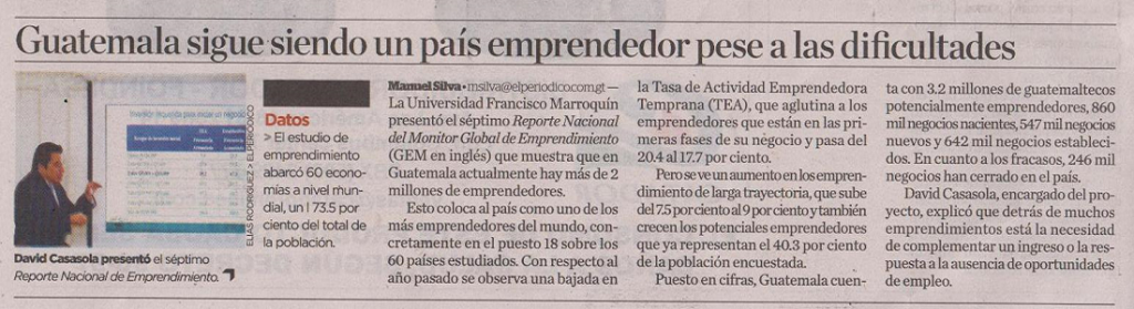 Guatemala es un país de emprendedores, a pesar de las dificultades, reportó Manuel Silva, de El Periódico, al referirse al Monitor de Emprendimiento Global (GEM, por sus siglas en inglés).