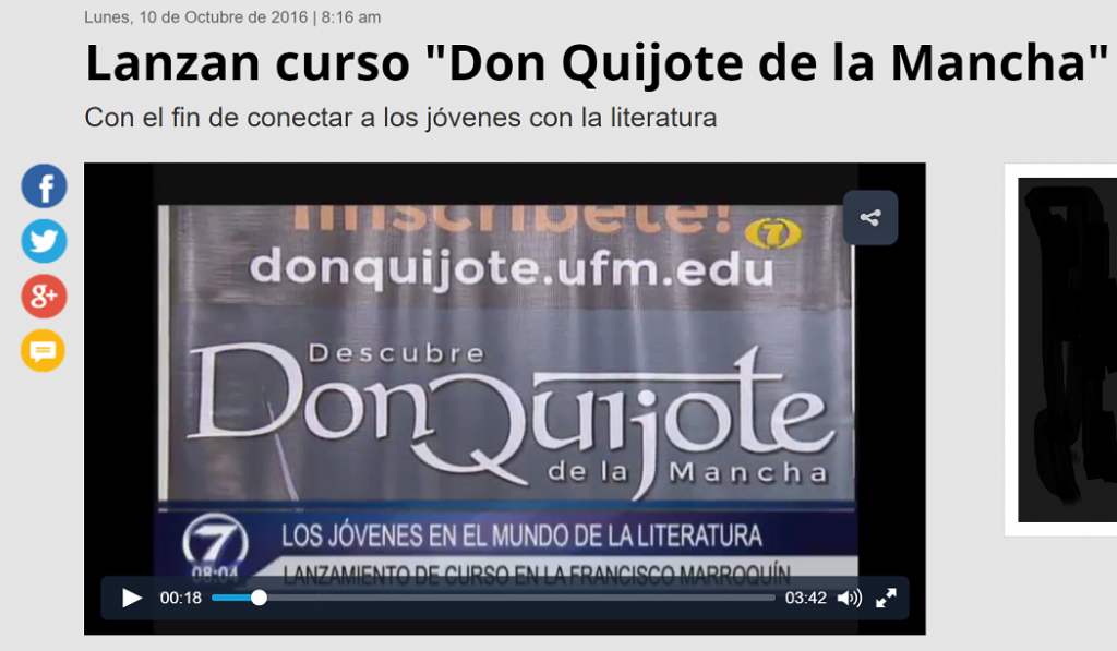 Con el propósito de conectar a los jóvenes con la literatura, la UFM lanzó el curso Don Quijote de la Mancha, reportaron Noti7 y Chapintv.com