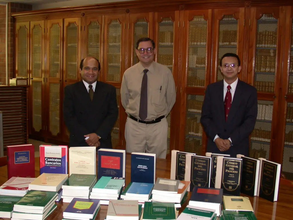El licenciado Milton Estuardo Argueta, decano de la Facultad de Derecho le entregó los libros al licenciado Julio Cole, director…