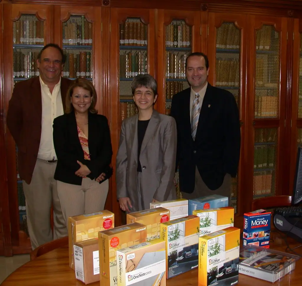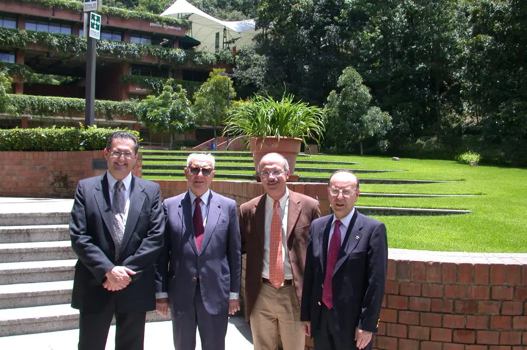 Pedro Trujillo, Juan Jose Sanz, Francisco Beltranena and Felipe Ruiz in front of the Academic Building. Felipe Ruiz and Juan…