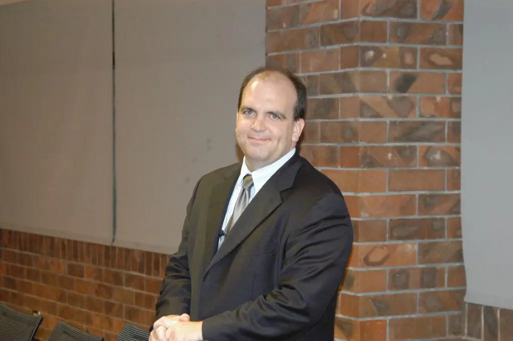 Jason A. Korosec durante su exposición en la UFM. Jason A. Korosec, experto en medios electrónicos de pago, en fraudes…