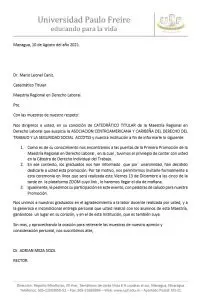 Adrian Meza, rector de la Universidad Paulo Freire, de Managua, Nicaragua, le comunicó al profesor Caniz que los graduados decidieron, por unanimidad dedicarle esa promoción catedrático. El Rector se unió al agradecimiento por la labor docente, de Caniz y elogió su generosa e incondicional entrega.
